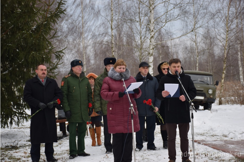 Митинг открыли глава муниципального образования «Краснинский район» Смоленской области Архипенков Сергей Валентинович, военный комиссар Краснинского района, полковник запаса Владимир Петрович Козлов, сотрудник Пограничного отделения в г.Рудня Петр Юрьевич Гольнев, командир поискового отряда «Русич» Светлана Александровна Колабская и ученики Глубокинской школы.