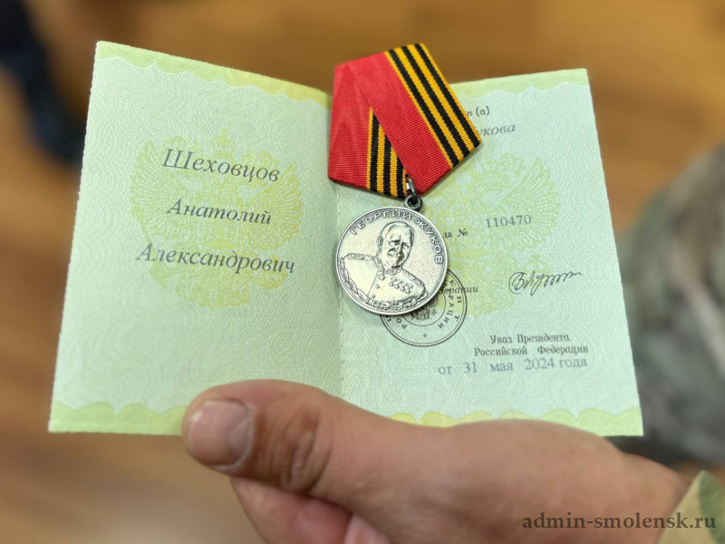 Сегодня с особым чувством гордости и уважения Глава округа Максим Владимирович Мищенко вручил медаль «Жукова» уроженцу Красного, участнику специальной военной операции - Шеховцову Анатолию Александровичу. Эта высокая награда – символ признания его исключительного мужества и отваги, проявленных в ходе боевых действий.