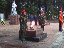 После слов поздравлений настоятель храма Преображения Господня протоирей Сергий отслужил заупокойную литию по погибшим в годы войны.