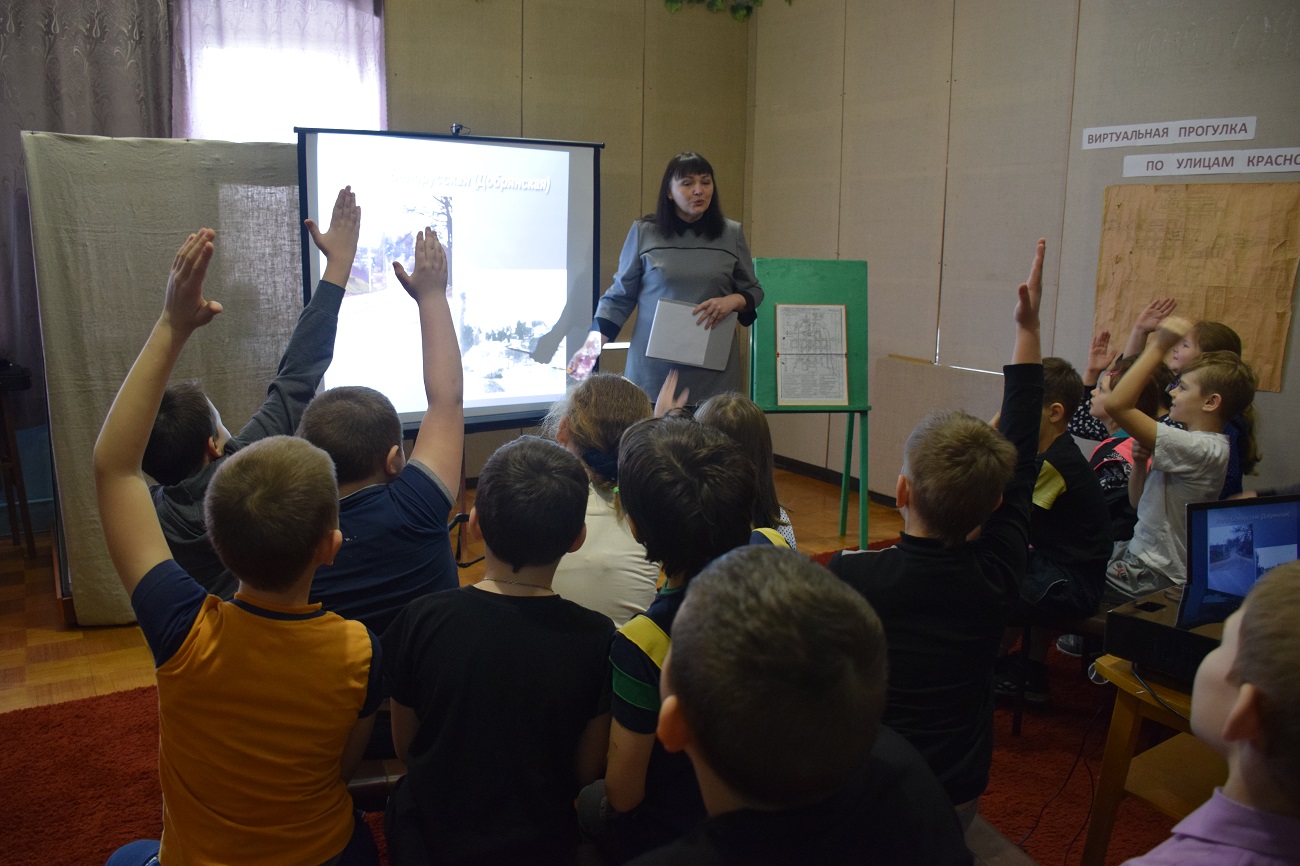 Не каждый из нас, даже проживший в нашем посёлке много лет, знает, сколько в настоящее время улиц в Красном, а также историю их названия. Каждый день мы ходим по этим улицам и так привыкли к их названиям, что не задумываемся над тем, кому принадлежат эти имена, чем известны эти люди и события. Познакомить детей с историей названий улиц нашего посёлка стало целью мероприятия «Виртуальная прогулка по улицам Красного». Вместе с сотрудниками музея «прогулку совершили» юные краеведы кружка «Моя малая Родина», обучающиеся 3 «А» класса Краснинской средней школы.