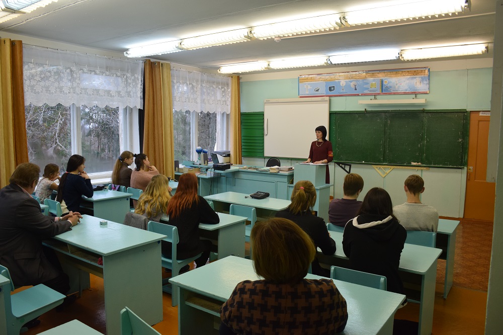 Перед учащимися выступили Анастасия Ивановна Шейко – начальник отдела ЗАГС муниципального образования «Краснинский район» Смоленской области, член народной дружины, и Александр Павлович Шестернев – начальник отдела экономики, комплексного развития и муниципального имущества муниципального образования «Краснинский район» Смоленской области, командир народной дружины.