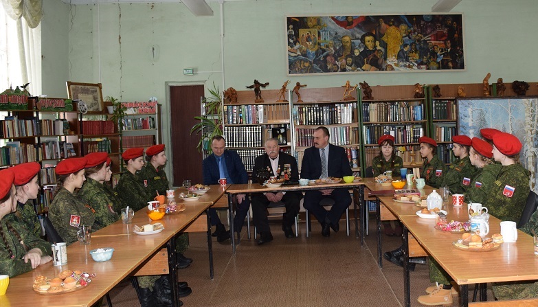 В начале марта в Краснинской Центральной Районной библиотеке состоялась встреча ветерана Великой Отечественной войны Вакунова Ивана Ивановича с участниками Местного отделения Всероссийского детско-юношеского военно-патриотического общественного движения «Юнармия» Краснинского района Смоленской области. Также на мероприятии присутствовали заместитель Главы муниципального образования "Краснинский район" Смоленской области Попков Владимир Николаевич, директор МУП ЖКХ "Надежда" Старовойтов Александр Евгеньевич и специалист отдела образования Администрации муниципального образования «Краснинский район» Смоленской области Юлия Валерьевна Юденкова